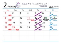 2026年2月の休診日はこちらのカレンダーでご確認ください